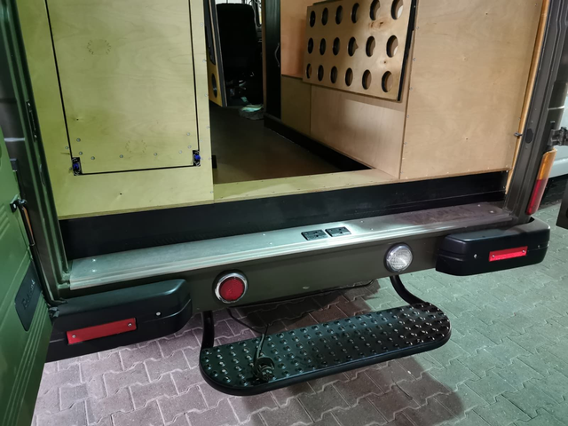 Das Bauteil wurde als Eigenentwicklung gefertigt und besteht aus Edelstahl. Es dient dem Schutz der hinteren Ladekante und beugt Korrosion oder Beschädigungen im Ladebereich vor.
